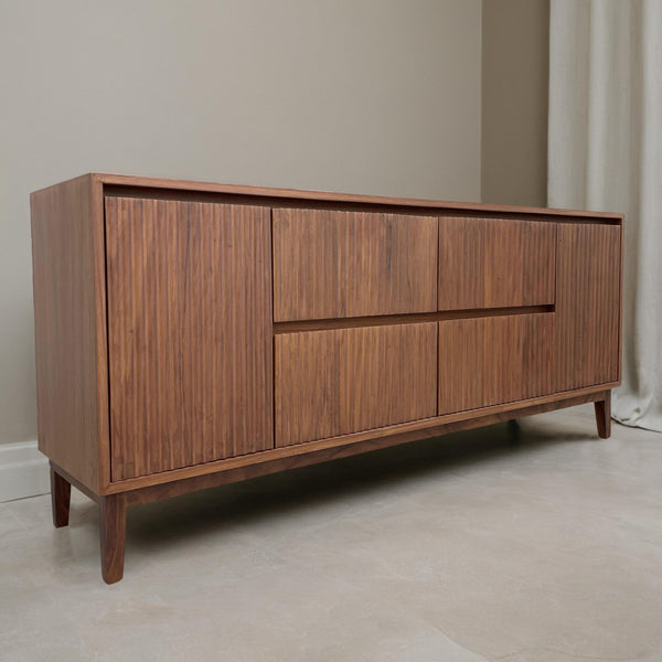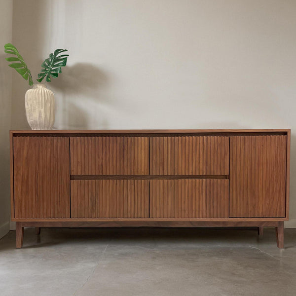Buffet fabricated in parota wood with a polyurethane lacquer finish, it has four drawers and two doors.